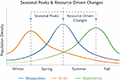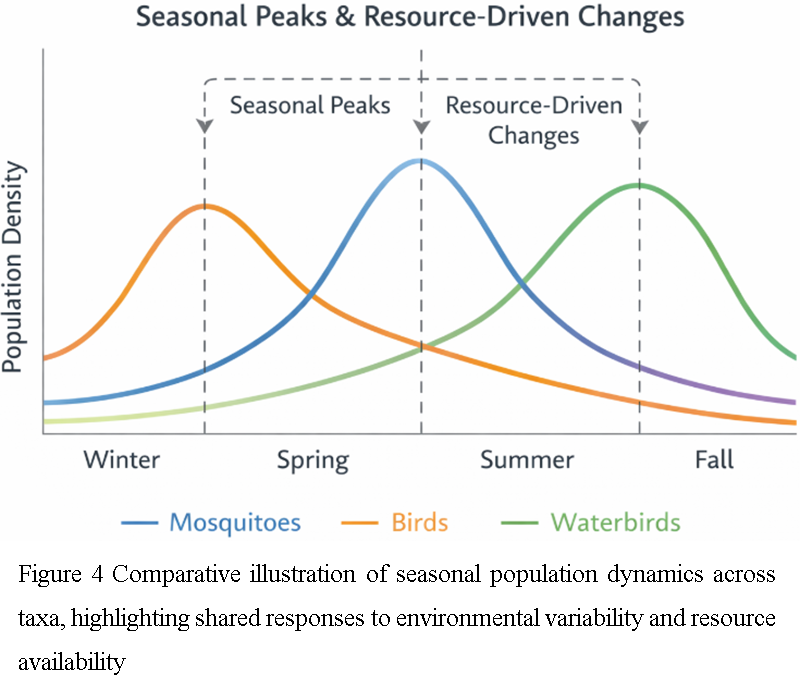 Figure 4 Comparative illustration of seasonal population dynamics across taxa, highlighting shared responses to environmental variability and resource availability