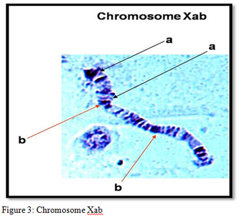 Figure 1); it is easily identified by its much smaller size. In sibling species A and D, 1 large dark band occur near centromere and 4 large dark band occur in the middle of X- chromosome are also important features of X+a+b (X-chromosome) (