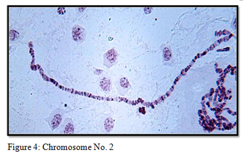 Chromosome 2: Chromosome 2 is the longest autosomal arm (Figure 4). On the basis of the banding pattern on chromosome arm-2, sibling species C of An. culicifacies was identified from Hoshangabad (Dhadav and Padav villages). The diagnostic inversion genotypes for sibling species C was Xab; 2+ g1h1(Figure 5) whereas other districts samples of An. culicifacies on the basis of the banding pattern on chromosome arm-2, sibling species D of An. culicifacies was identified from Narsinghpur (Chinki, Bhalpani, Sherpipariya and Gotegaon villages) and Khandwa (Chighdhalia and Narnada Nagar villages). The diagnostic inversion genotypes for sibling species D was X+a+b; 2i1+h1 (Figure 6).
