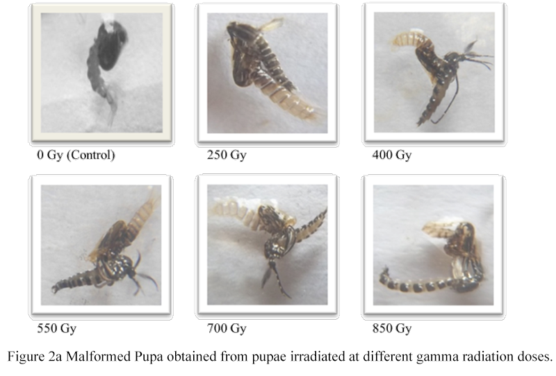 Irradiation of Aedes aegypti is performed in the present study to investigate the effect of different radiation doses on pupal viability, adult emergence and malformation of pupae and adults if any.