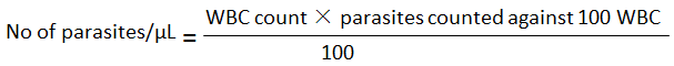 The blood glucose was estimated using glucose oxidase method of Trinder and the malaria parasite test was carried out using the method described by Cheesbrough (2005). A thick and thin blood films were made and stained using Giemsa stain for 30 minutes and the films were allowed to dry. The slides were viewed under the microscope using the 100× objective, which were examined at 100 high power microscope fields. Malaria density was estimated by counting parasites against white blood cells. The number of parasites per microliter (μL) of blood was calculated as follows: