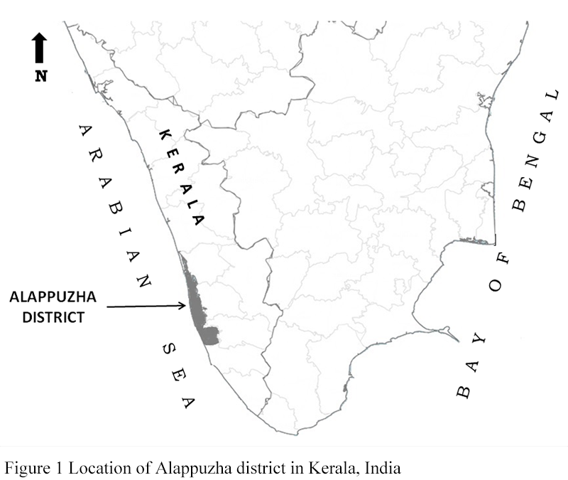 Figure 1 Location of Alappuzha district in Kerala, India |