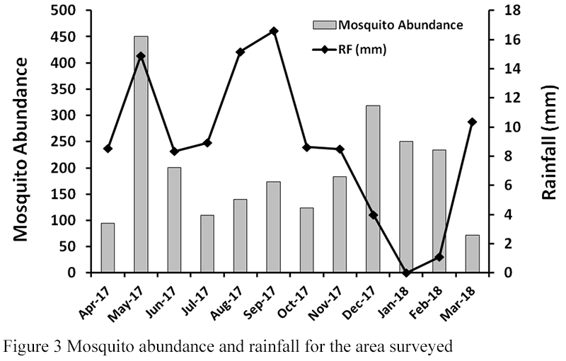 Figure 3 Mosquito abundance and rainfall for the area surveyed |