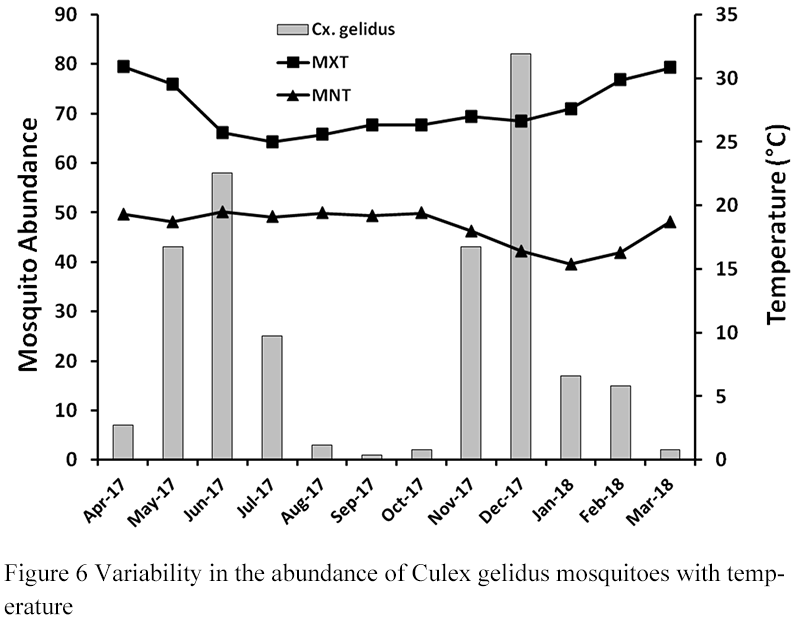 Figure 6 Variability in the abundance of Culex gelidus mosquitoes with temperature |