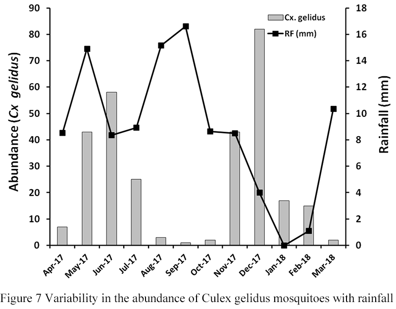 Figure 7 Variability in the abundance of Culex gelidus mosquitoes with rainfall |