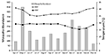 Figure 5 compares the abundance of Cx. tritaeniorhynchus and monthly rainfall. The Pearson's correlation coefficient, r=-0.483 (95% confidence, p-value=0.131) indicated a moderate negative association between Cx. tritaeniorhynchus abundance and monthly rainfall.
