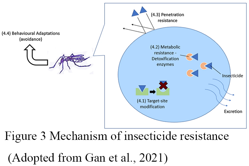 Figure 3 Mechanism of insecticide resistance (Adopted from Gan et al., 2021) |