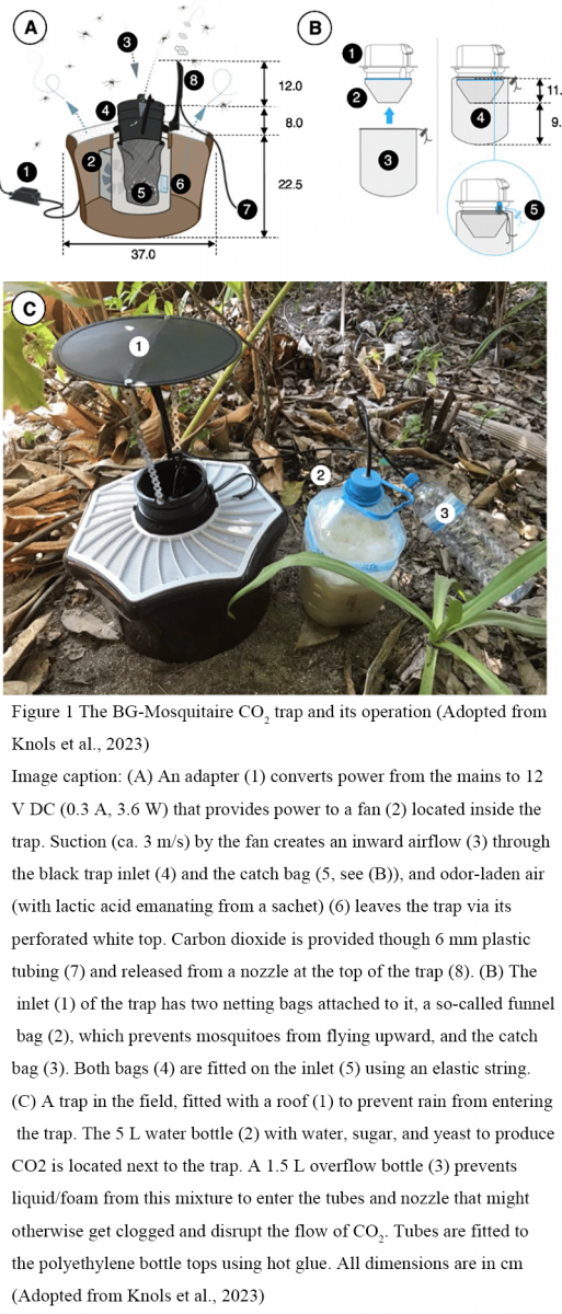 Figure 1 The BG-Mosquitaire CO2 trap and its operation (Adopted from Knols et al., 2023)