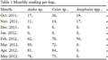 Table 1 Monthly reading per trap |