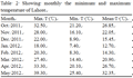 Table 2 Showing monthly the minimum and maximum temperature of Lahore |