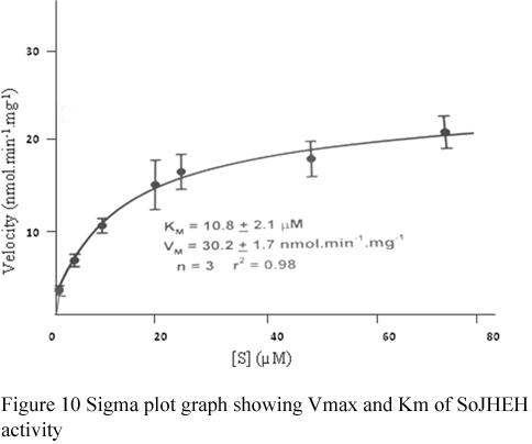 Figure 10 Sigma plot graph showing Vmax and Km of SoJHEH activity