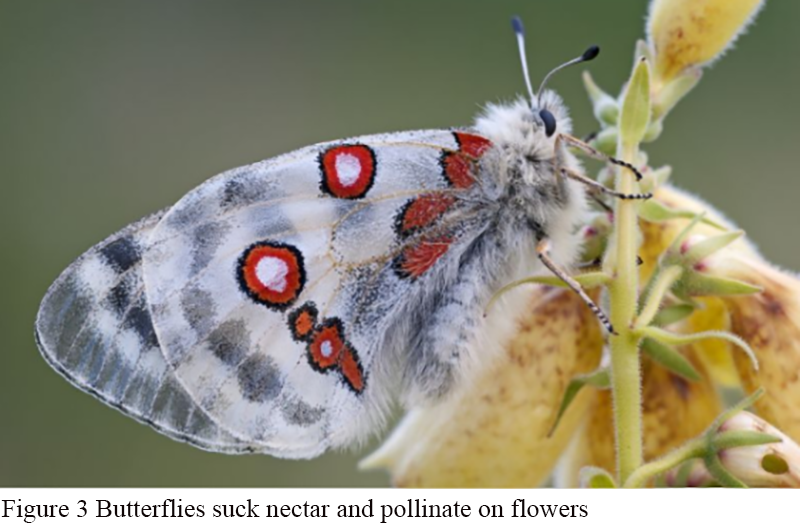Figure 3 Butterflies suck nectar and pollinate on flowers