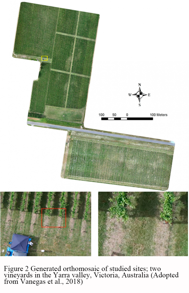 Figure 2 Generated orthomosaic of studied sites; two vineyards in the Yarra valley, Victoria, Australia (Adopted from Vanegas et al., 2018)