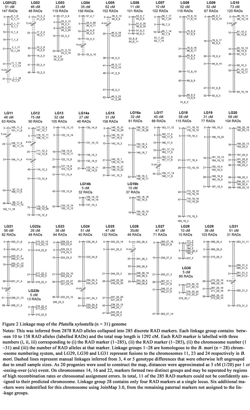 Figure 2 Linkage map of the Plutella xylostella (n = 31) genome (adopted from Baxter et al., 2011B) |